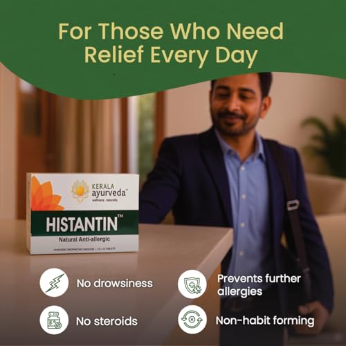 - Faster relief: Kerala Ayurveda Histantin tablet is an anti-allergic medicine. It controls release of histamines and provides faster relief in allergy symptoms like running nose (rhinitis), watery eyes, itchy skin or hives.It is a quick and effective remedy in allergies caused because of seasonal fluctuations and skin irritants.