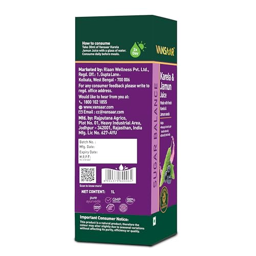 - Helps control blood sugar levels naturally: Vansaar Karela Jamun juice is suitable for diabetic & prediabetic care as it helps effectively manage blood sugar levels naturally. This diabetic care juice with clinically proven ingredients is most suitable for sugar control and is helpful for people with pre-diabetics & Diabetics symptoms.